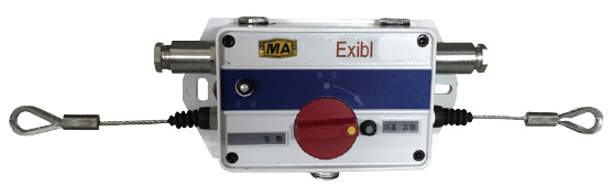| KHJ0.1/12L煤矿井下紧急闭锁开关(以下简称闭锁开关)是胶带输送机、猴车的主要保护装置之一,适用于煤矿井下有甲烷、煤尘等爆炸性危险环境中,“使用于经本安检验合格的电路中”接入本安型系统信号控制中,当输送机沿线发生各类意外,操作人员可就地拉动沿线绳索至闭锁开关动作,使胶带输送机控制系统断电停机。闭锁开关也可用于地面上非爆炸性场所,如钢铁厂、水泥厂、发电厂、港口和码头等有胶带输送机的场合,作沿线拉绳紧急闭锁保护用。 | |